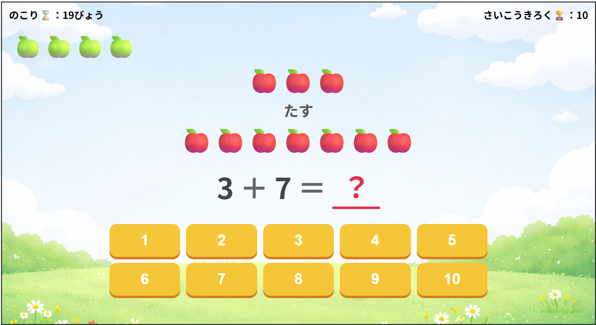 りんごをつかって、たしざんをするゲームだよ🍎✨
