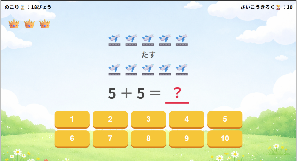 ※ 「さいこうきろく」はページをとじるとリセットされます